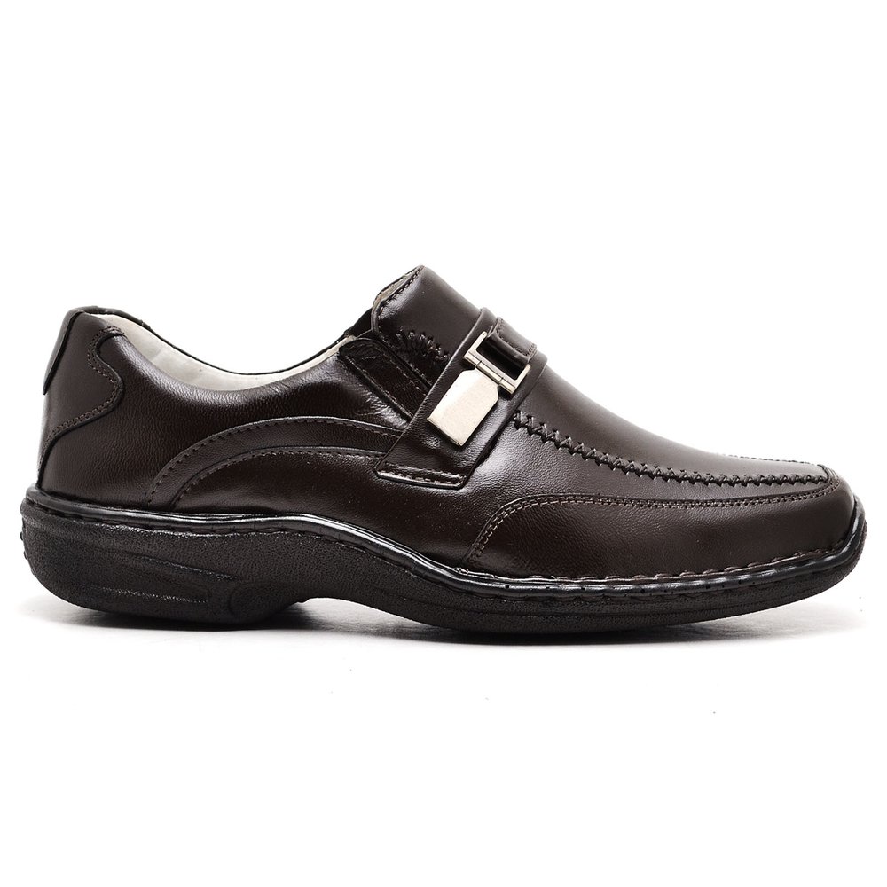 PRODUTO LINHA CONFORTO Sapato Casual Confortável de Calçar, confeccionado em Couro. A Linha PREMIUM é diferenciada pelos seus componentes: - Couro Selecionado (Classificação Exportação) - Forro Interno em Couro - para melhor absorção - Palmilha Interna, P.U. (Poliuretano) conformada em Formato Anatômico, dublada em Couro, proporcionando maior conforto ao caminhar - Acabamento Artesanal (feita somente com Cremes e Mousses e sem auxílio de Tintas e Anilinas) - Solado de P.U. (Poliuretano) Blaqueado (costurado na parte inferior) na planta com Acabamento Artesanal em Cores Descrição Técnica: Cabedal (Parte Externa): Couro (Mestiço) com Detalhe de Metal Forro: Couro Palmilha Interna: P.U. (Poliuretano) Formato Anatômico Dublado em Couro Solado: P.U. (Poliuretano) Fechamento: Elástico 100% Feito a mão / Couro / 100% Couro (Cabedal). Garantia: Os Calçados da nossa loja possuem garantia contra defeitos de fabricação.